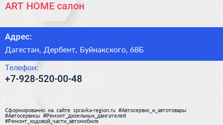 ART HOME, салон по адресу Дагестан, Дербент, Буйнакского, 68Б в дальнейшем Организация, размещена в следующих категориях: