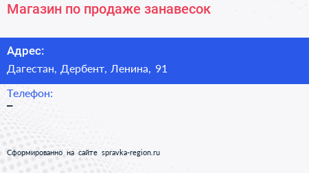 Магазин по продаже занавесок по адресу Дагестан, Дербент, Ленина, 91 в дальнейшем Организация, размещена в следующих категориях:
