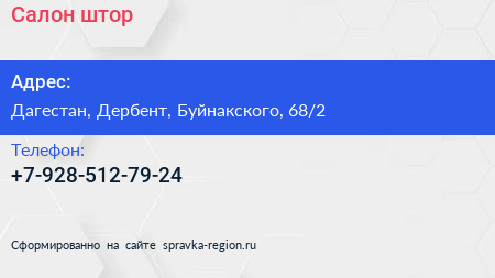 Салон штор по адресу Дагестан, Дербент, Буйнакского, 68/2 в дальнейшем Организация, размещена в следующих категориях: