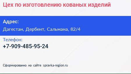 Цех по изготовлению кованых изделий по адресу Дагестан, Дербент, Сальмана, 82/4 в дальнейшем Организация, размещена в следующих категориях: