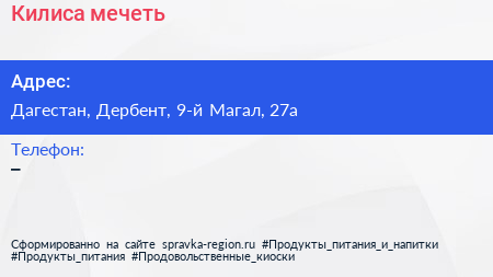 Килиса-мечеть по адресу Дагестан, Дербент, 9-й Магал, 27а в дальнейшем Организация, размещена в следующих категориях: