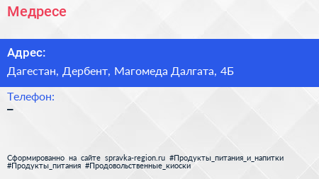Медресе по адресу Дагестан, Дербент, Магомеда Далгата, 4Б в дальнейшем Организация, размещена в следующих категориях:
