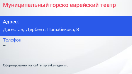 Муниципальный горско-еврейский театр по адресу Дагестан, Дербент, Пашабекова, 8 в дальнейшем Организация, размещена в следующих категориях: