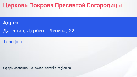Церковь Покрова Пресвятой Богородицы по адресу Дагестан, Дербент, Ленина, 22 в дальнейшем Организация, размещена в следующих категориях: