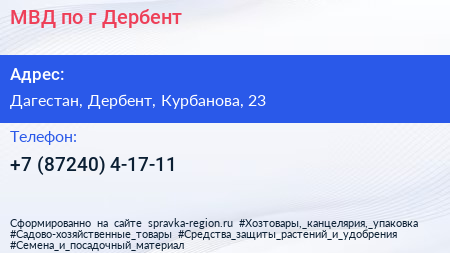 МВД по г. Дербент по адресу Дагестан, Дербент, Курбанова, 23 в дальнейшем Организация, размещена в следующих категориях: