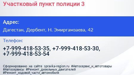 Участковый пункт полиции №3 по адресу Дагестан, Дербент, Н. Эмиргамзаева, 42 в дальнейшем Организация, размещена в следующих категориях: