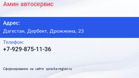 Амин, автосервис по адресу Дагестан, Дербент, Дрожжина, 23 в дальнейшем Организация, размещена в следующих категориях: