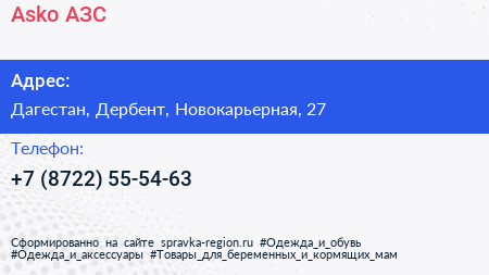 Asko, АЗС по адресу Дагестан, Дербент, Новокарьерная, 27 в дальнейшем Организация, размещена в следующих категориях: