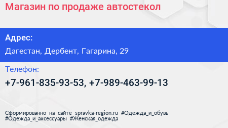 Магазин по продаже автостекол по адресу Дагестан, Дербент, Гагарина, 29 в дальнейшем Организация, размещена в следующих категориях: