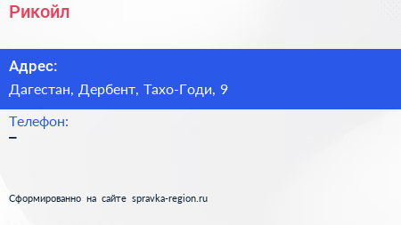 Рикойл по адресу Дагестан, Дербент, Тахо-Годи, 9 в дальнейшем Организация, размещена в следующих категориях: