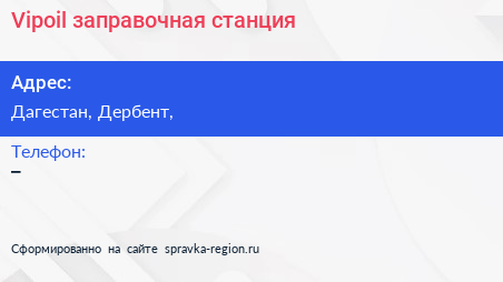 Vipoil, заправочная станция по адресу Дагестан, Дербент, в дальнейшем Организация, размещена в следующих категориях: