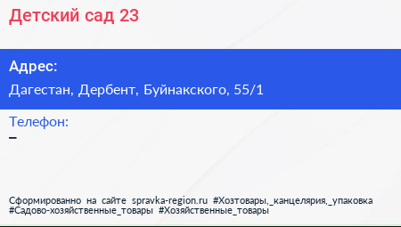 Детский сад №23 по адресу Дагестан, Дербент, Буйнакского, 55/1 в дальнейшем Организация, размещена в следующих категориях: