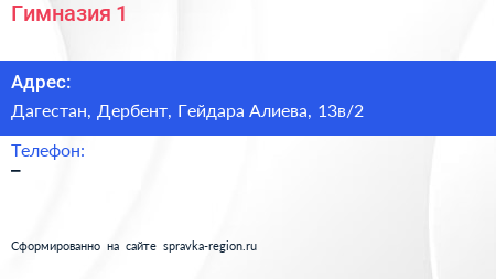 Гимназия №1 по адресу Дагестан, Дербент, Гейдара Алиева, 13в/2 в дальнейшем Организация, размещена в следующих категориях:
