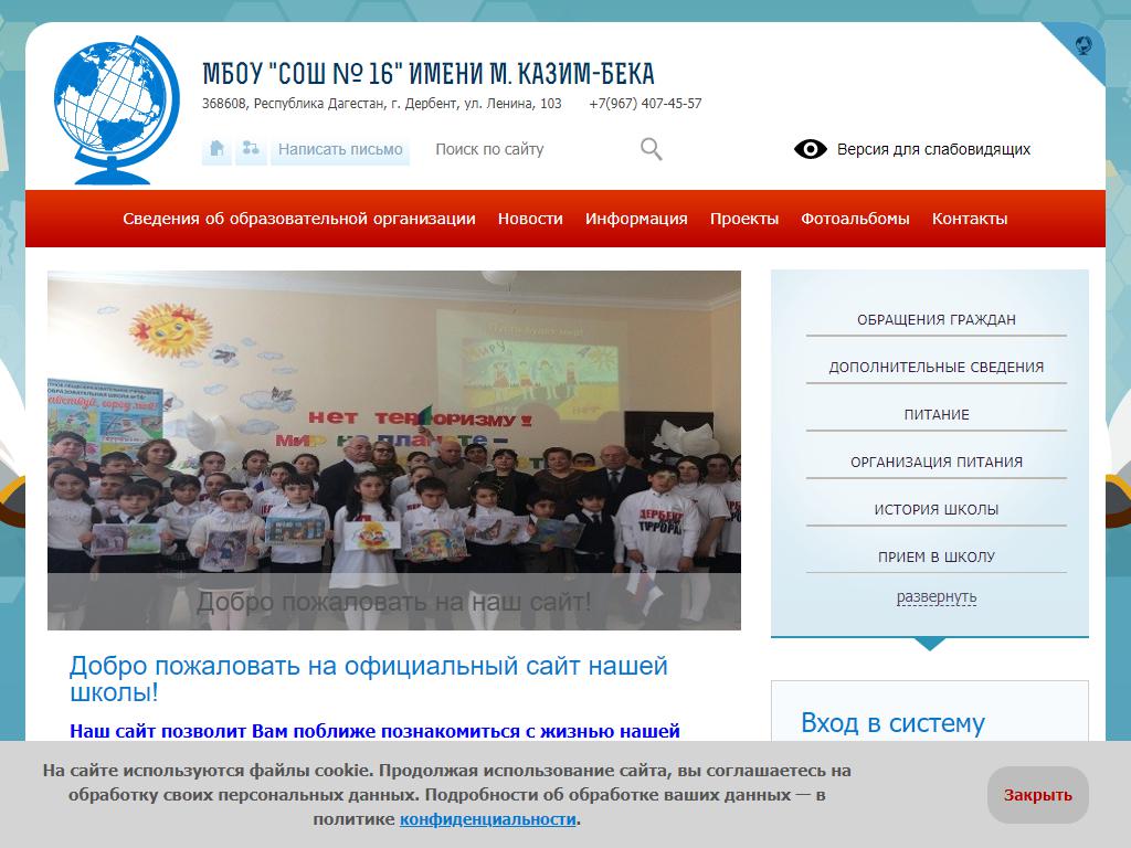 Школа №16 им. Мирзы Казим-Бека, г. Дербент по адресу Дагестан, Дербент, Ленина, 103 в дальнейшем Организация, размещена в следующих категориях: