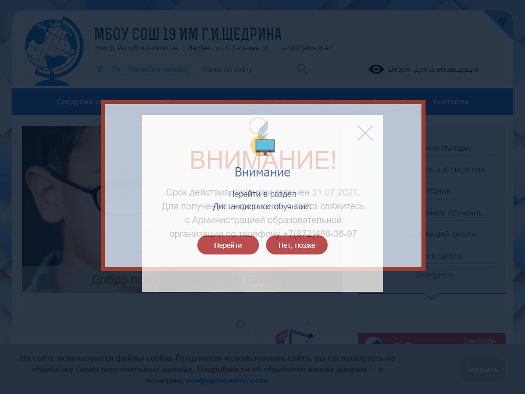 Школа №19 им. Г.И. Щедрина по адресу Дагестан, Дербент, Генриха Гасанова, 10 в дальнейшем Организация, размещена в следующих категориях:
