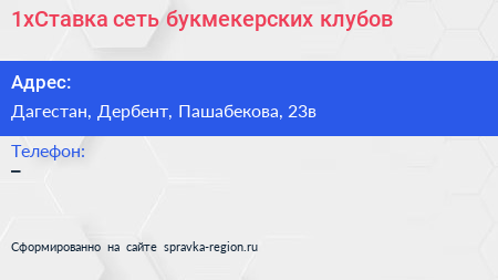 1xСтавка, сеть букмекерских клубов по адресу Дагестан, Дербент, Пашабекова, 23в в дальнейшем Организация, размещена в следующих категориях:
