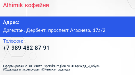 Адрес: Дагестан, Дербент, Курбанова, 28а/3