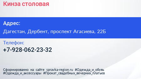 Кинза, столовая по адресу Дагестан, Дербент, проспект Агасиева, 22Б в дальнейшем Организация, размещена в следующих категориях: