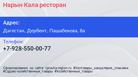 Адрес: Дагестан, Дербент, Курбанова, 28а/3
