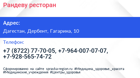 Рандеву, ресторан по адресу Дагестан, Дербент, Гагарина, 10 в дальнейшем Организация, размещена в следующих категориях:
