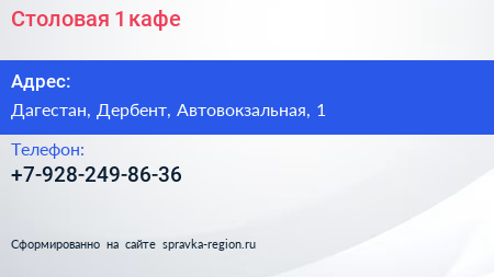 Столовая №1, кафе по адресу Дагестан, Дербент, Автовокзальная, 1 в дальнейшем Организация, размещена в следующих категориях:
