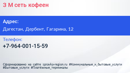 З & М, сеть кофеен по адресу Дагестан, Дербент, Гагарина, 12 в дальнейшем Организация, размещена в следующих категориях: