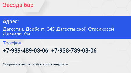 Звезда, бар по адресу Дагестан, Дербент, 345 Дагестанской Стрелковой Дивизии, 6м в дальнейшем Организация, размещена в следующих категориях: