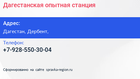 Дагестанская опытная станция по адресу Дагестан, Дербент, в дальнейшем Организация, размещена в следующих категориях: