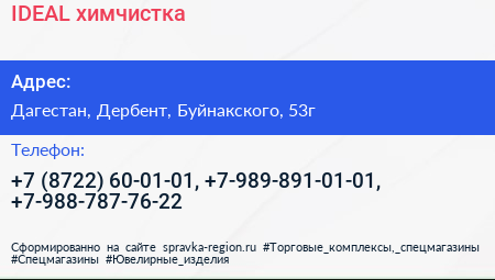 IDEAL, химчистка по адресу Дагестан, Дербент, Буйнакского, 53г в дальнейшем Организация, размещена в следующих категориях: