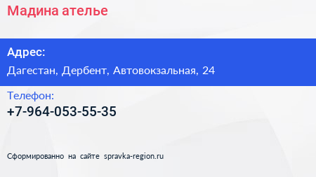 Мадина, ателье по адресу Дагестан, Дербент, Автовокзальная, 24 в дальнейшем Организация, размещена в следующих категориях: