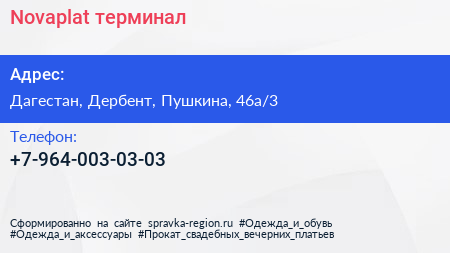 Novaplat, терминал по адресу Дагестан, Дербент, Пушкина, 46а/3 в дальнейшем Организация, размещена в следующих категориях: