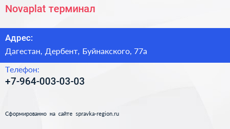 Novaplat, терминал по адресу Дагестан, Дербент, Буйнакского, 77а в дальнейшем Организация, размещена в следующих категориях: