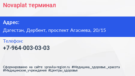 Novaplat, терминал по адресу Дагестан, Дербент, проспект Агасиева, 20/15 в дальнейшем Организация, размещена в следующих категориях: