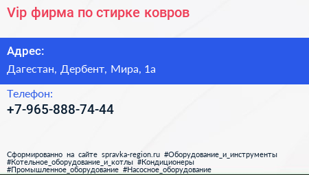 Vip, фирма по стирке ковров по адресу Дагестан, Дербент, Мира, 1а в дальнейшем Организация, размещена в следующих категориях: