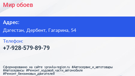 Мир обоев по адресу Дагестан, Дербент, Гагарина, 54 в дальнейшем Организация, размещена в следующих категориях: