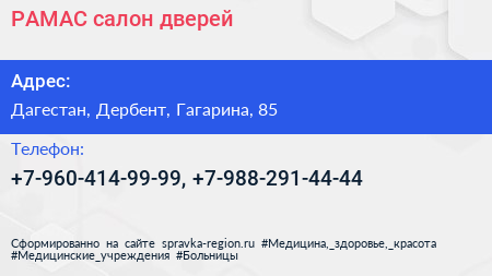 РАМАС, салон дверей по адресу Дагестан, Дербент, Гагарина, 85 в дальнейшем Организация, размещена в следующих категориях: