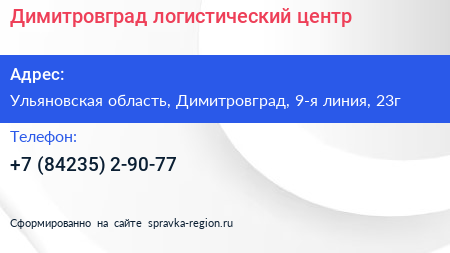 Димитровград, логистический центр по адресу Ульяновская область, Димитровград, 9-я линия, 23г в дальнейшем Организация, размещена в следующих категориях: