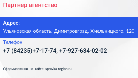 Партнер, агентство по адресу Ульяновская область, Димитровград, Хмельницкого, 120 в дальнейшем Организация, размещена в следующих категориях: