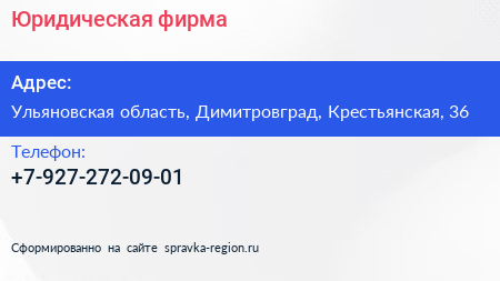 Юридическая фирма по адресу Ульяновская область, Димитровград, Крестьянская, 36 в дальнейшем Организация, размещена в следующих категориях: