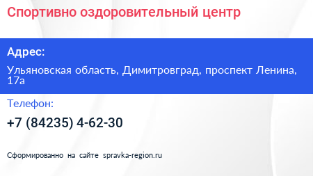 Спортивно-оздоровительный центр по адресу Ульяновская область, Димитровград, проспект Ленина, 17а в дальнейшем Организация, размещена в следующих категориях:
