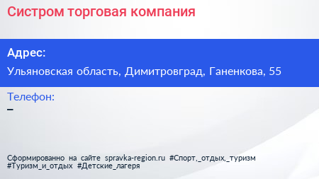 Систром, торговая компания по адресу Ульяновская область, Димитровград, Ганенкова, 55 в дальнейшем Организация, размещена в следующих категориях: