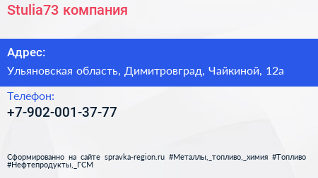 Stulia73, компания по адресу Ульяновская область, Димитровград, Чайкиной, 12а в дальнейшем Организация, размещена в следующих категориях:
