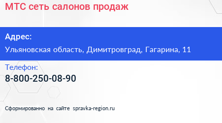 МТС, сеть салонов продаж по адресу Ульяновская область, Димитровград, Гагарина, 11 в дальнейшем Организация, размещена в следующих категориях: