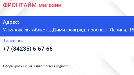 ФРОНТАЙМ, магазин по адресу Ульяновская область, Димитровград, проспект Ленина, 15 в дальнейшем Организация, размещена в следующих категориях: