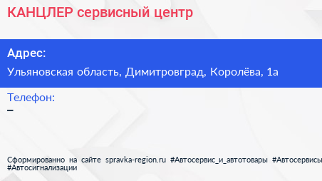 КАНЦЛЕР, сервисный центр по адресу Ульяновская область, Димитровград, Королёва, 1а в дальнейшем Организация, размещена в следующих категориях: