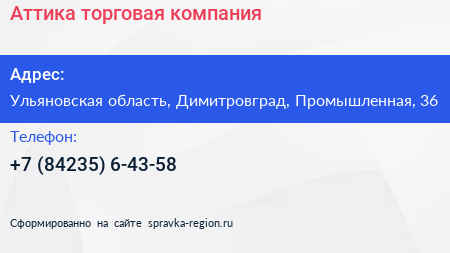 Аттика, торговая компания по адресу Ульяновская область, Димитровград, Промышленная, 36 в дальнейшем Организация, размещена в следующих категориях: