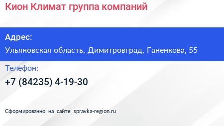 Кион Климат, группа компаний по адресу Ульяновская область, Димитровград, Ганенкова, 55 в дальнейшем Организация, размещена в следующих категориях: