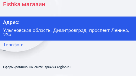 Fishka, магазин по адресу Ульяновская область, Димитровград, проспект Ленина, 23а в дальнейшем Организация, размещена в следующих категориях: