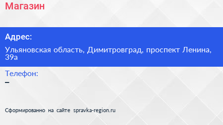 Магазин по адресу Ульяновская область, Димитровград, проспект Ленина, 39а в дальнейшем Организация, размещена в следующих категориях:
