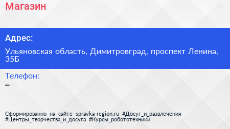 Магазин по адресу Ульяновская область, Димитровград, проспект Ленина, 35Б в дальнейшем Организация, размещена в следующих категориях: